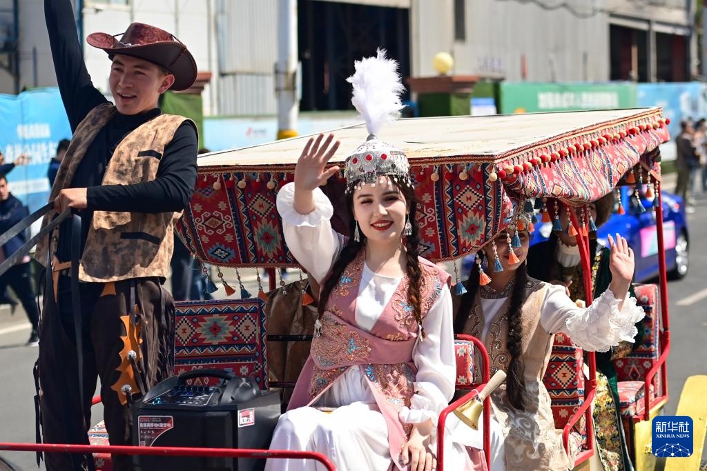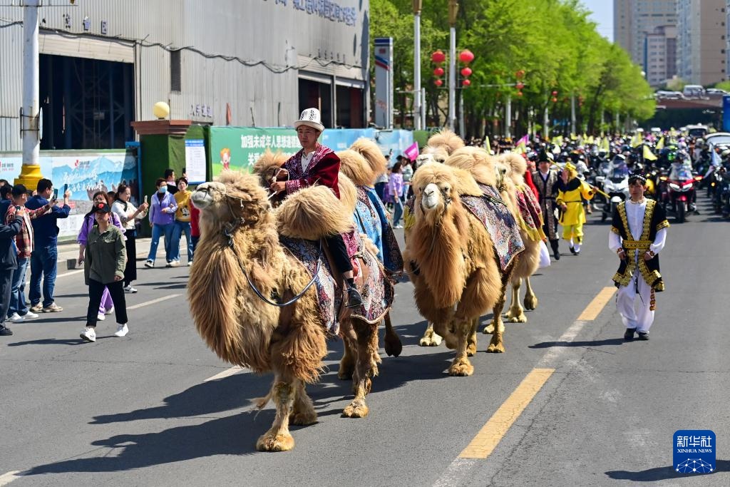 4月30日,一支庞大的巡游队伍亮相新疆乌鲁木齐市友好商圈。作为“五一”文化展演活动的一部分,乌鲁木齐市通过马队、驼队、花车等巡游的方式,展示城市的发展活力和独特魅力。
