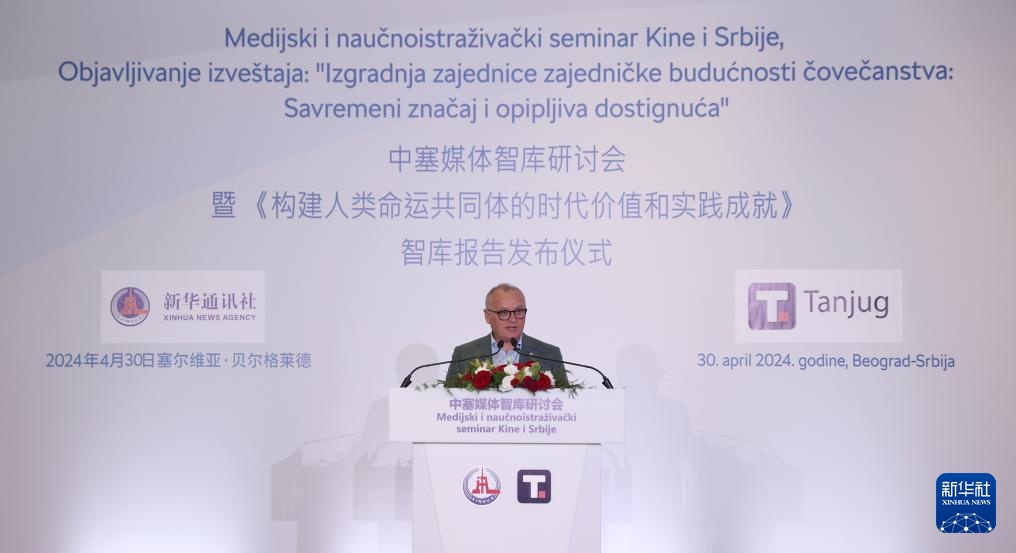 中塞媒体智库研讨会暨《构建人类命运共同体的时代价值和实践成就》(塞文版)智库报告发布仪式4月30日在贝尔格莱德举行。此次活动由新华社联合塞尔维亚南斯拉夫通讯社共同主办,主题为“以人类命运共同体理念为引领 深化中塞全面战略伙伴关系”。