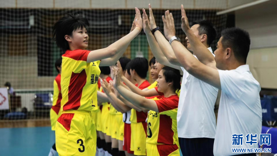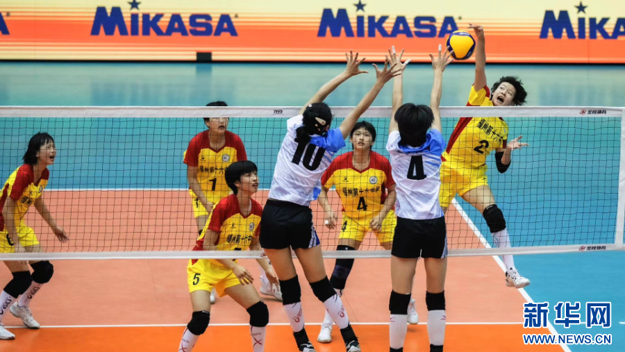 福州第十六中学女排队员在赛场上火力全开。新华网发(福州第十六中学供图)