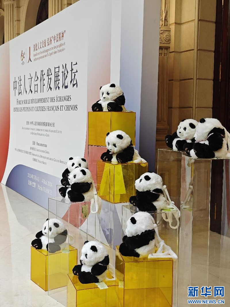 5月4日拍摄的中法人文合作发展论坛现场。来自中国四川的熊猫玩偶深受嘉宾喜爱,成为论坛上一道靓丽风景。杨磊 摄