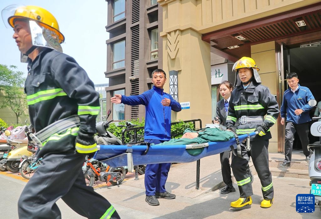 5月10日,河北省秦皇岛市海港区消防救援大队西环路消防救援站指战员指导当地社区居民开展消防演练。