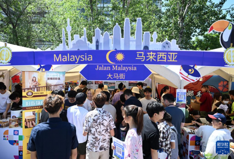 5月12日,师生和游客在天津大学国际文化节马来西亚展位前参观。