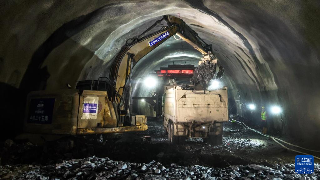 5月14日,六绵山隧道爆破完成后,施工队在进行清渣作业。