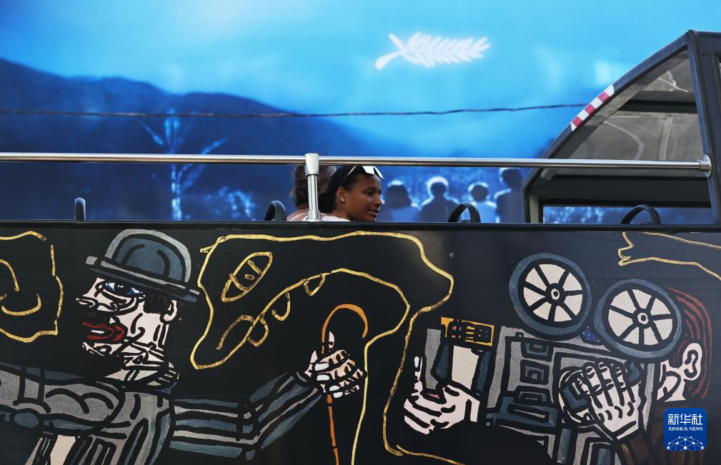 5月13日,在法国南部小城戛纳,一辆旅游大巴经过电影宫前的巨幅海报。 第77届戛纳电影节将于5月14日至25日举行。今年有多部华语影片入围戛纳电影节不同单元。法国戛纳国际电影节与德国柏林国际电影节、意大利威尼斯国际电影节并称为欧洲三大国际电影节。 新华社记者 高静 摄