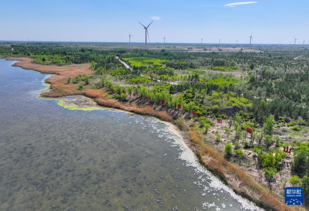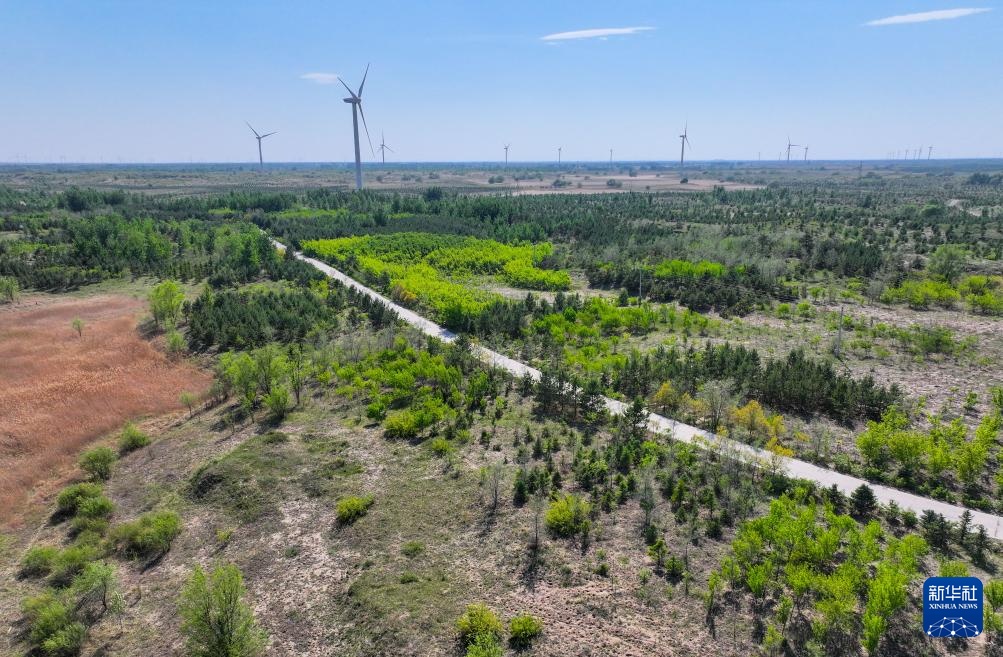 5月15日,在内蒙古通辽市科左后旗甘旗卡镇巴克要系统化治理项目区,沙地上绿意盎然。