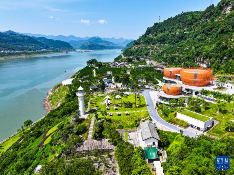 这是5月15日拍摄的重庆万州小桔灯生态文化旅游区及长江景象(无人机照片)。