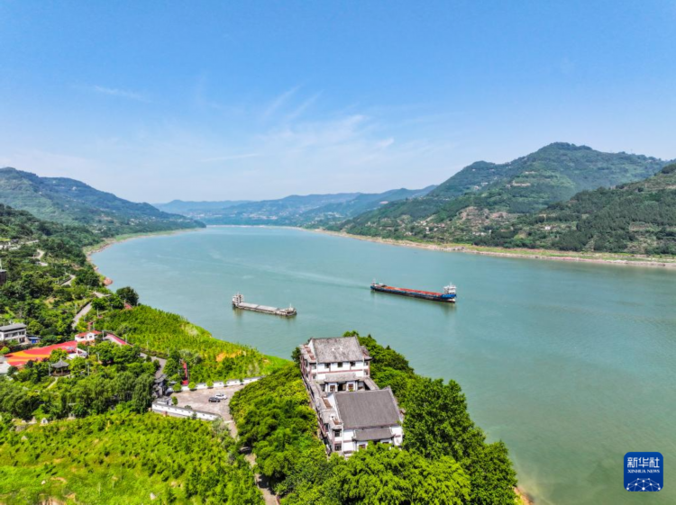 这是5月15日拍摄的重庆市万州区黄柏乡狮子岛及长江景象(无人机照片)。
