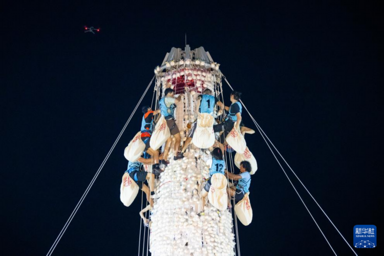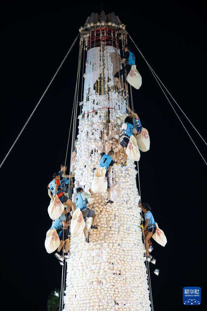 这是5月16日在香港长洲岛拍摄的“抢包山”比赛现场。