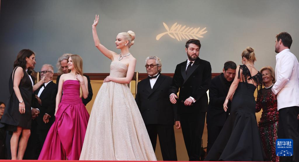 5月15日,在法国南部小城戛纳举行的第77届戛纳国际电影节上,影片导演乔治·米勒(右一)、主演安雅·泰勒-乔伊(右二)和克里斯·海姆斯沃斯(左二)出席非竞赛单元影片《疯狂的麦克斯:狂暴女神》首映礼。 第77届戛纳国际电影节14日晚拉开帷幕。 新华社记者 高静 摄