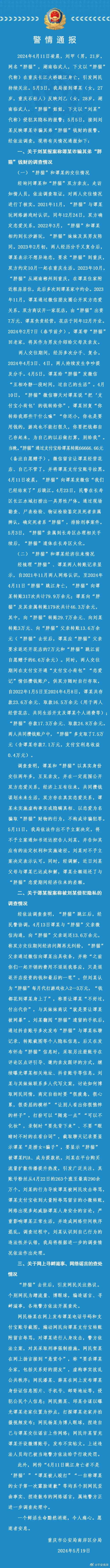5月19日,重庆市公安局南岸区分局通报“胖猫”事件。全文如下——