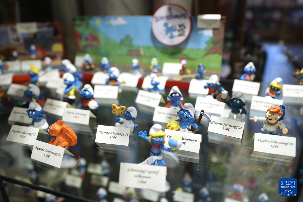 这是5月18日在比利时布鲁塞尔的漫画博物馆拍摄的蓝精灵玩偶。 当日是国际博物馆日,许多游客市民来到位于比利时布鲁塞尔的漫画博物馆参观游玩,体验漫画魅力。1989年开馆的布鲁塞尔漫画博物馆是漫画爱好者的天堂。这里除了陈列比利时最著名的卡通人物丁丁、蓝精灵卡通画以外,还有世界各地许多卡通画家的作品。 新华社记者 赵丁喆 摄