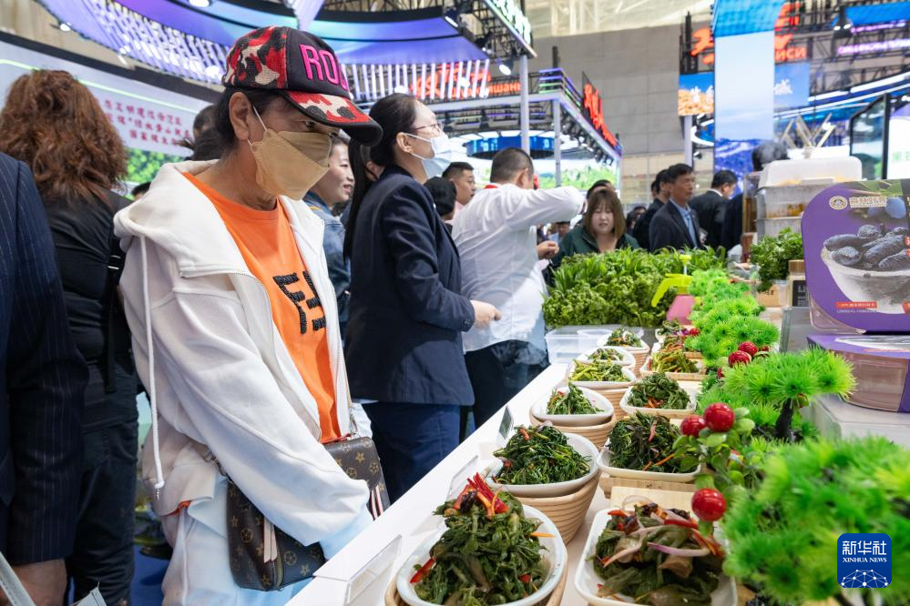 5月20日,在第八届中俄博览会现场,参观者查看来自黑龙江林区的食品。