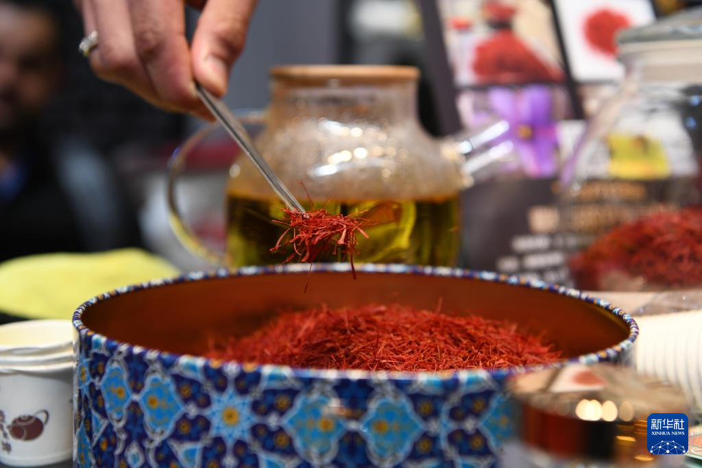 5月20日,在第八届中俄博览会上,参会人员展示伊朗的藏红花。