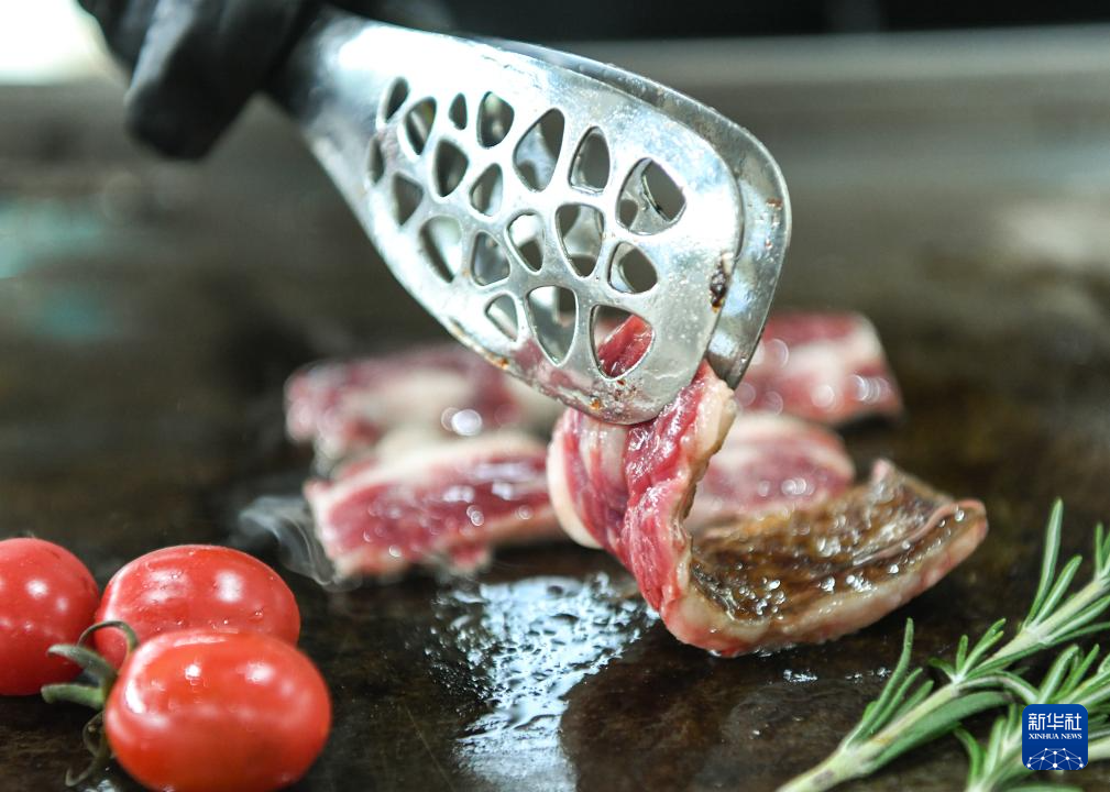 5月19日,在第八届中俄博览会上,参会人员在煎制高品质雪花牛肉。