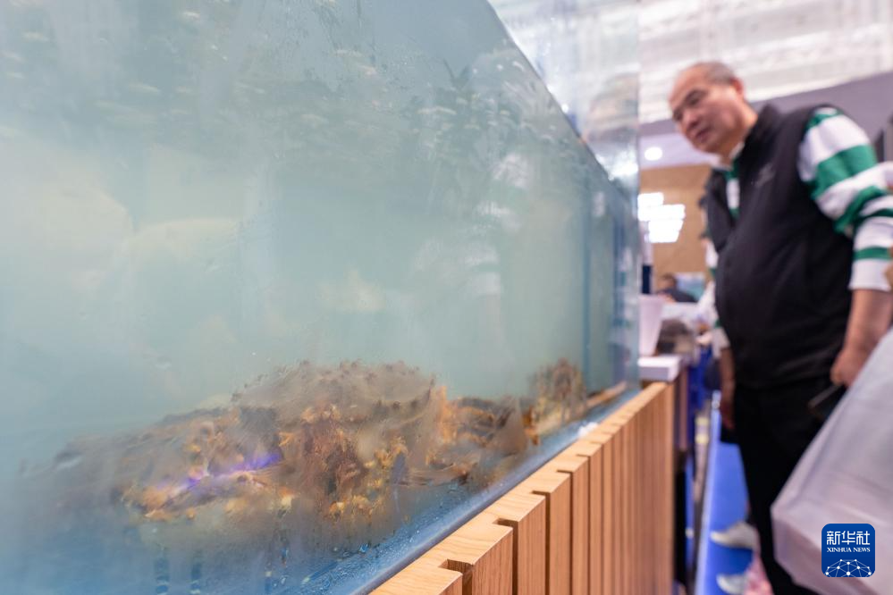 5月20日,在第八届中俄博览会现场,参观者选购俄罗斯帝王蟹。