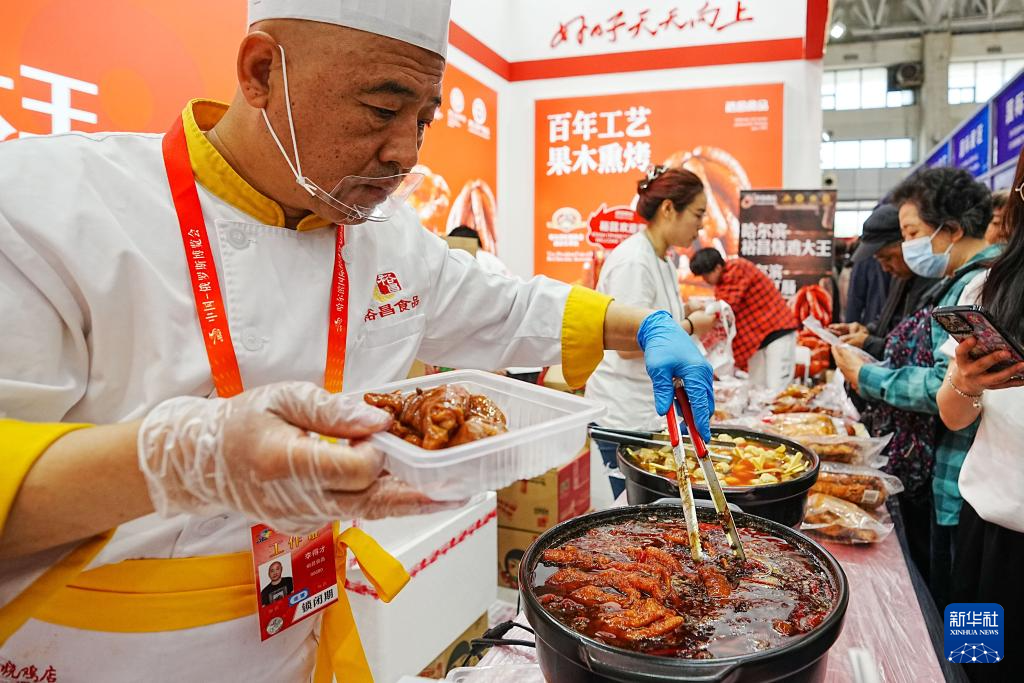 5月20日,在第八届中俄博览会上,厨师在准备美食。