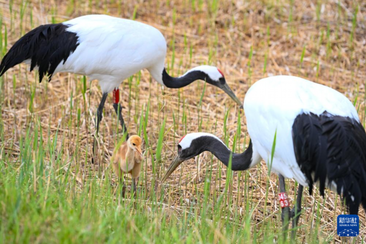 当前,在黑龙江扎龙国家级自然保护区,人工散养丹顶鹤孵化的“鹤宝宝”开始跟随父母进行“适应训练”。据了解,在保护区散养的丹顶鹤,是经过人工繁育的“过渡种群”。它们的后代,在长大后将被野化放归。