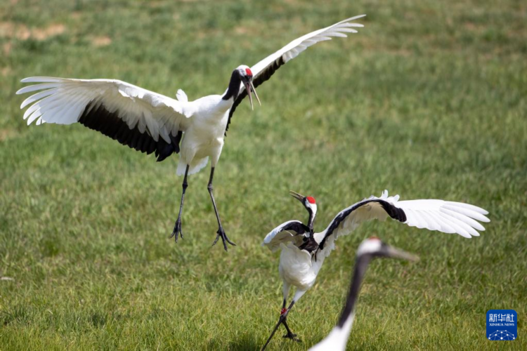 这是5月21日在扎龙国家级自然保护区拍摄的丹顶鹤。
