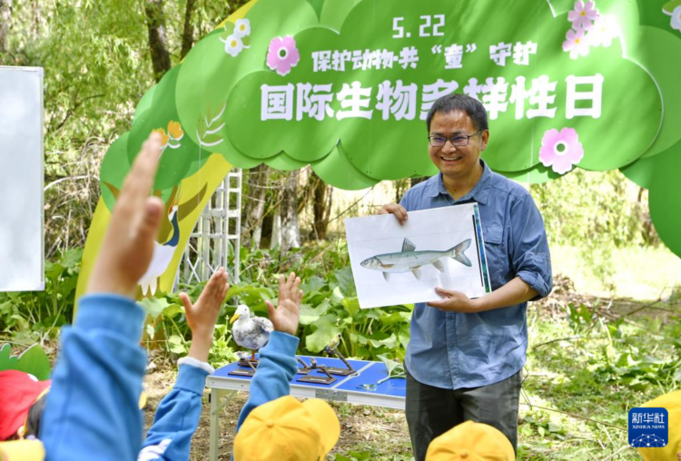 5月22日,西藏大学生态环境学院教授张继峰向小学生普及有关西藏鱼类的知识。