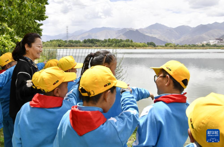 5月22日,拉鲁小学师生一起观赏拉鲁湿地美景。