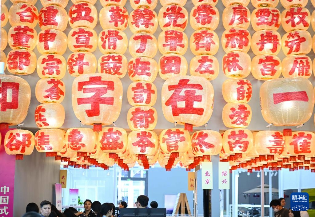 5月23日,观众在第二十届文博会现场选购汉字文创产品。