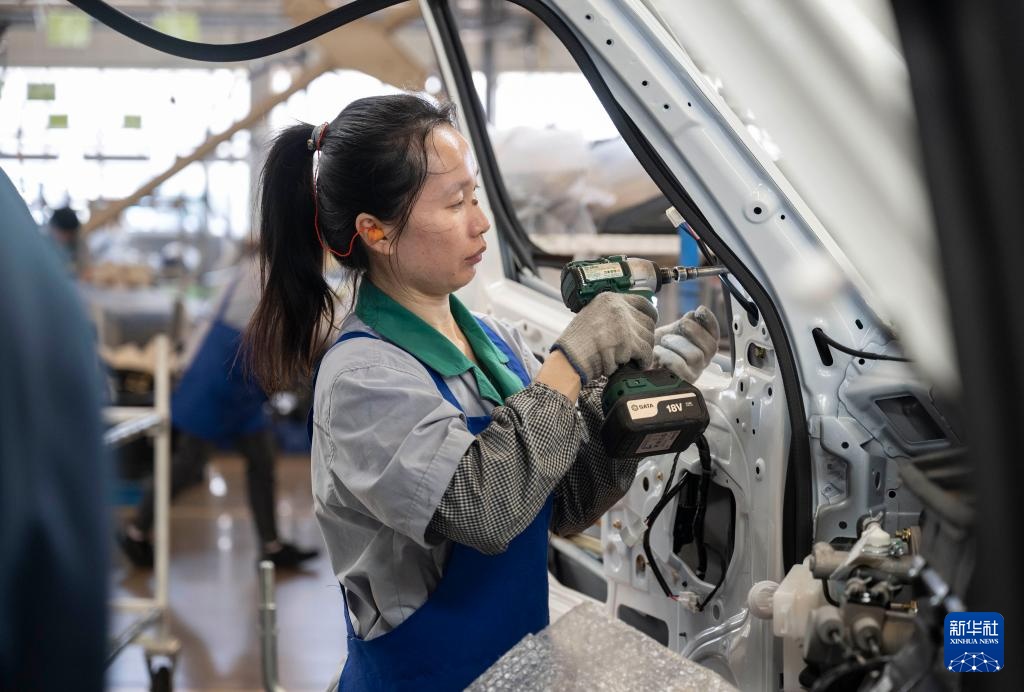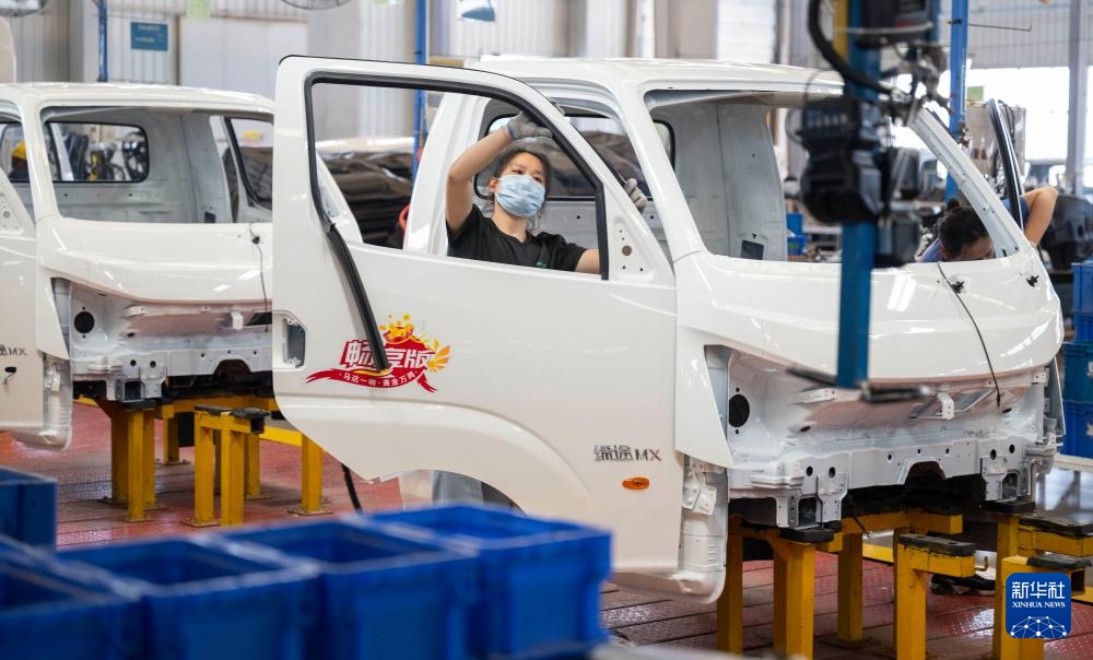 5月23日,工人在日照市五莲县五征集团总装车间进行汽车内饰安装。