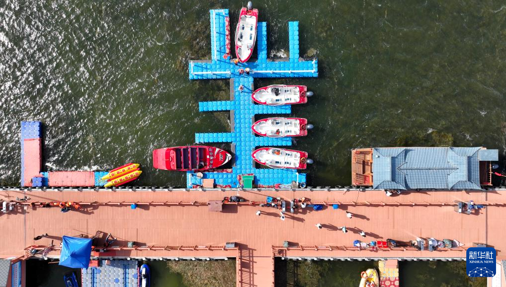 这是5月25日拍摄的乌梁素海游船码头(无人机照片)。