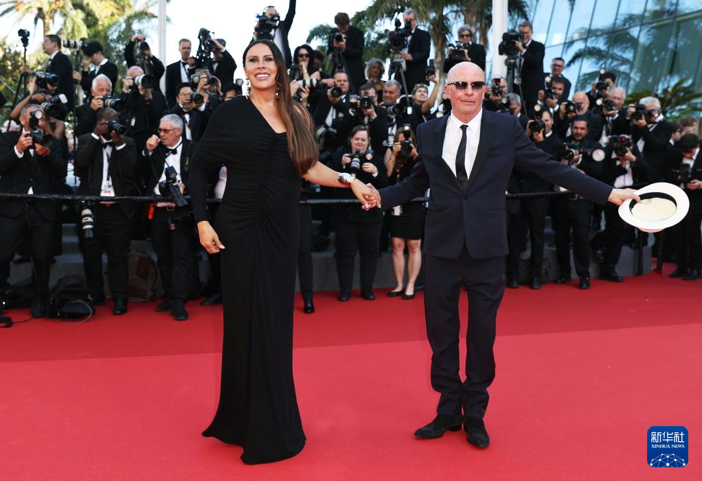 5月25日,在法国南部城市戛纳举行的第77届戛纳电影节上,演员卡拉·索菲亚·加斯孔(左)和法国导演雅克·奥迪亚尔抵达闭幕式红毯。