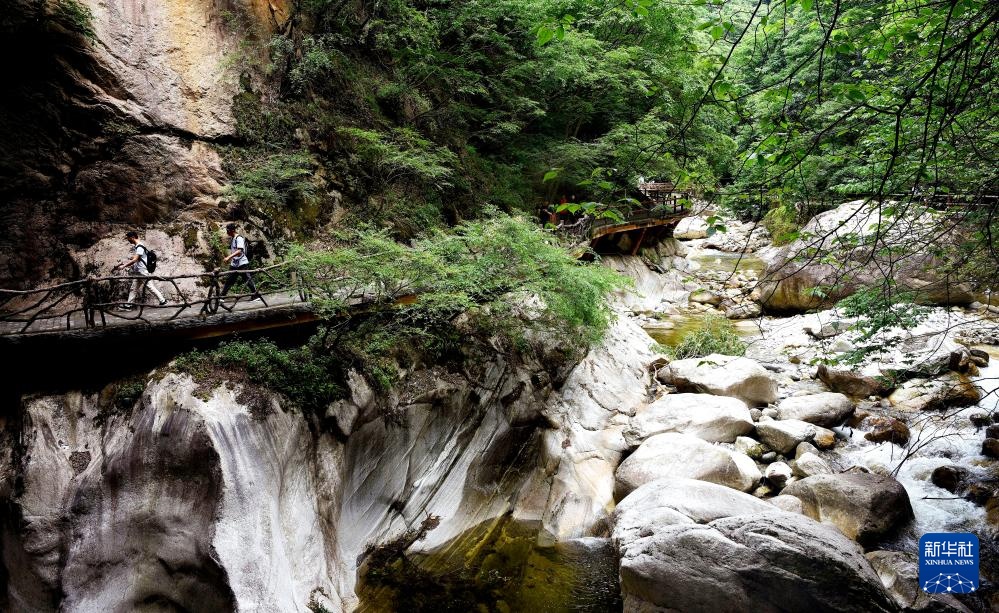 游客在西安太平国家森林公园游览(5月26日摄)。