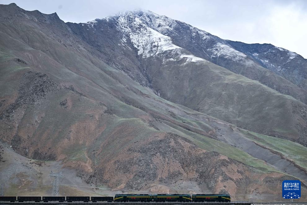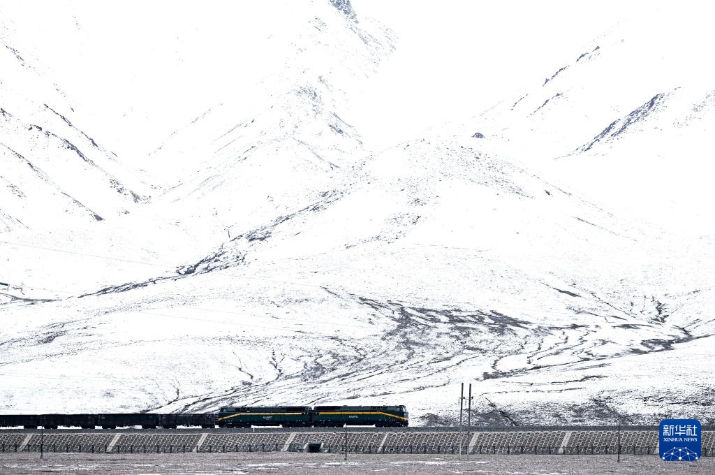 列车行驶在昆仑山下的青藏铁路上(5月27日摄)。