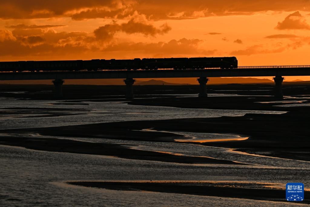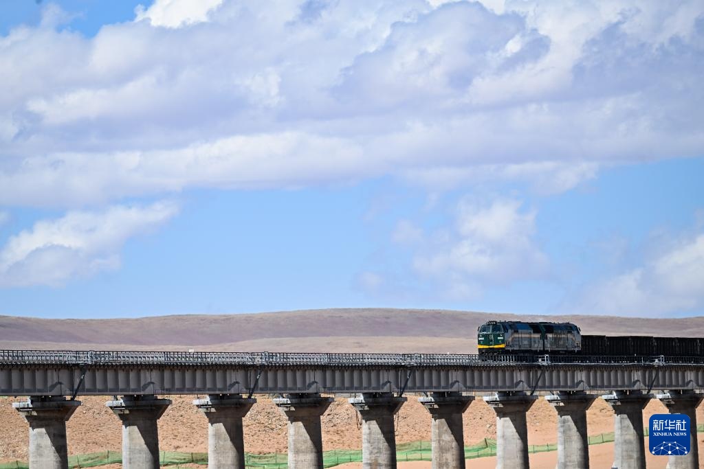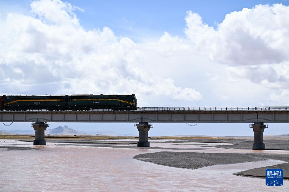 列车行驶在青藏铁路沱沱河大桥上(5月25日摄)。