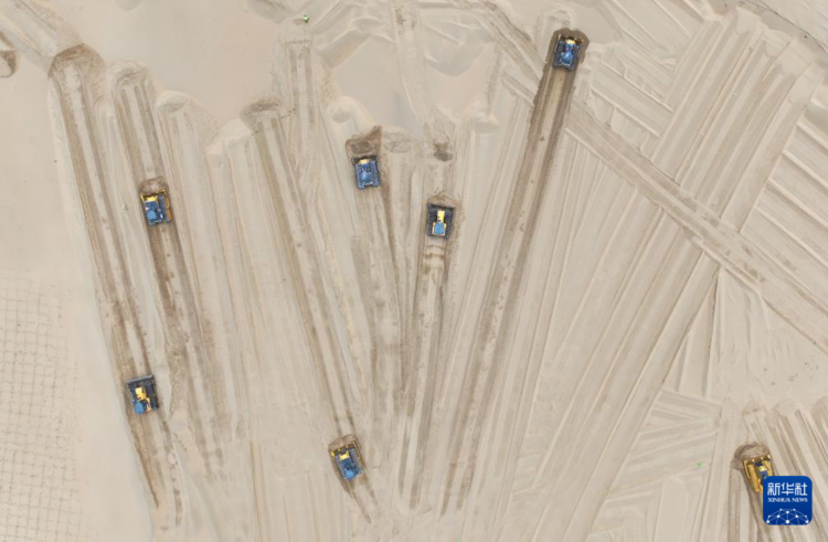 5月29日,在杭锦旗朔方新能源大基地建设现场,工程机械在施工(无人机照片)。