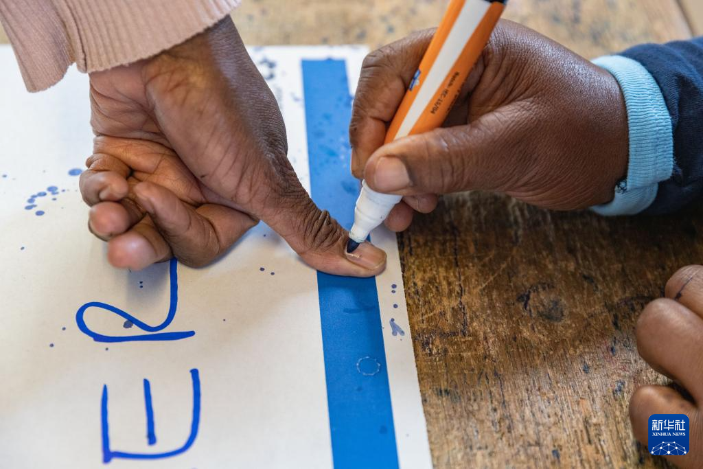 5月29日,工作人员在约翰内斯堡索韦托的一处投票站内为即将投票的选民做标记。 南非29日举行结束种族隔离制度后的第七次大选,选举新一届国民议会(议会下院)和省级议会。 新华社记者 张誉东 摄