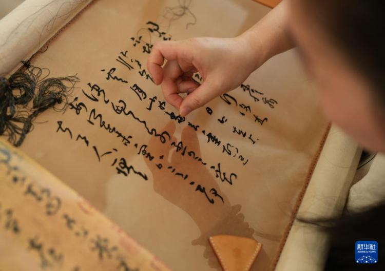 5月30日,刺绣工作室主理人金斐斐根据王羲之《上虞帖》制作刺绣作品。