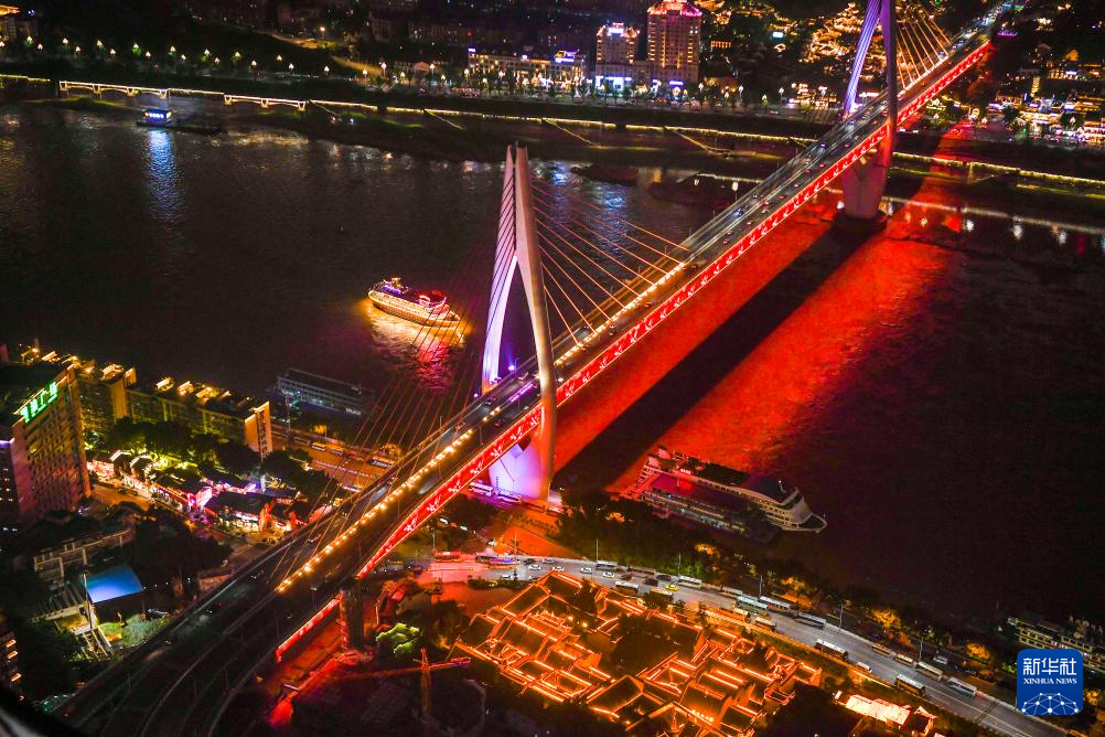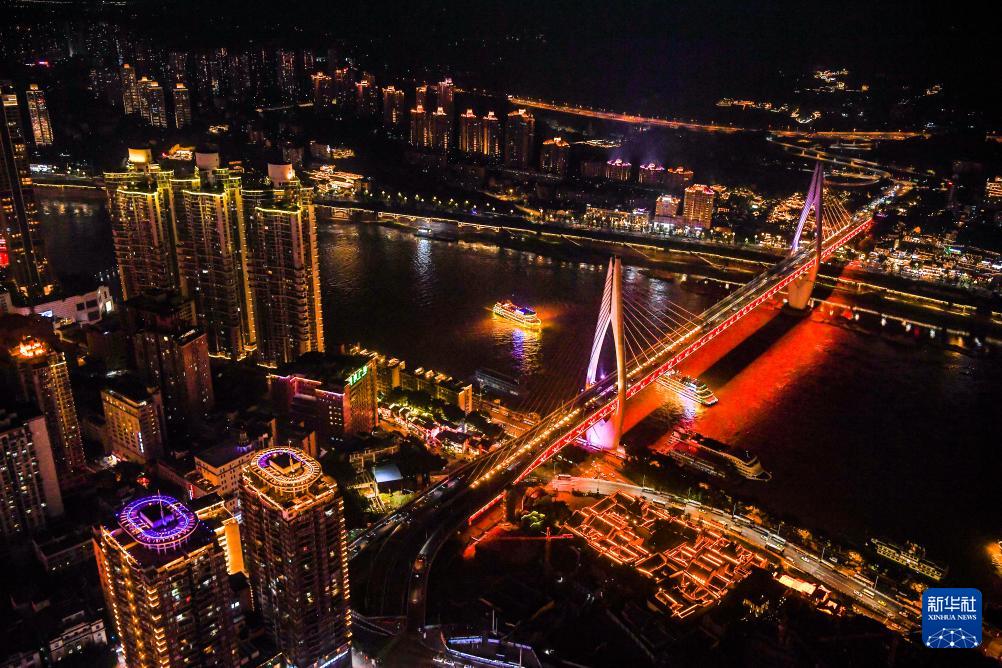 夜幕下的山水之城重庆灯光璀璨、景色迷人。夜景是重庆的靓丽名片。