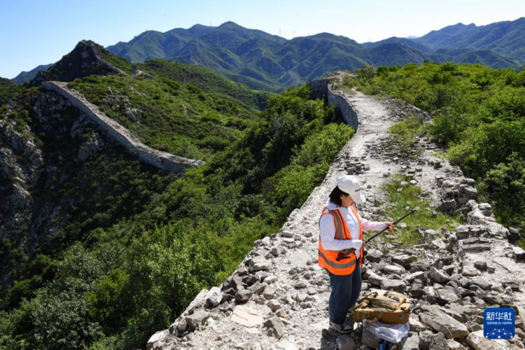 长城保护员刘红岩在石峡村的明长城上巡查(6月1日摄)。