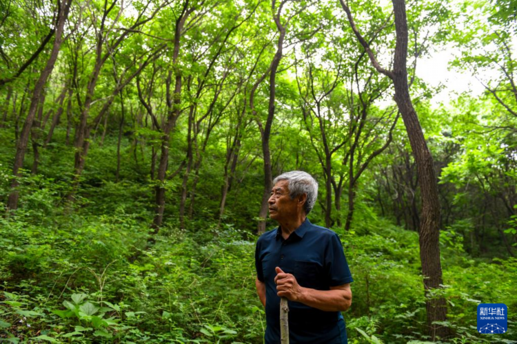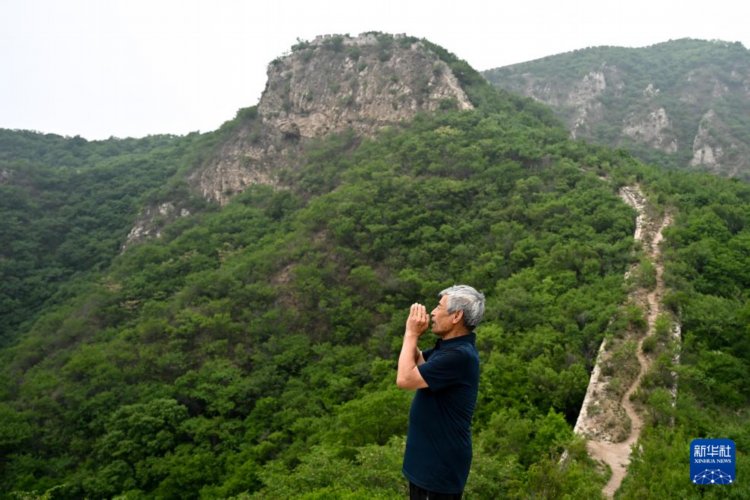 80岁的长城保护员梅景田在前往长城的山路上(5月23日摄)。上世纪80年代初,梅景田开始自发保护长城,已带动不少村民形成保护长城的意识。