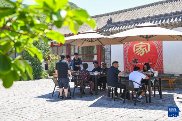 游客在石峡村的农家院餐厅用餐(6月1日摄)。