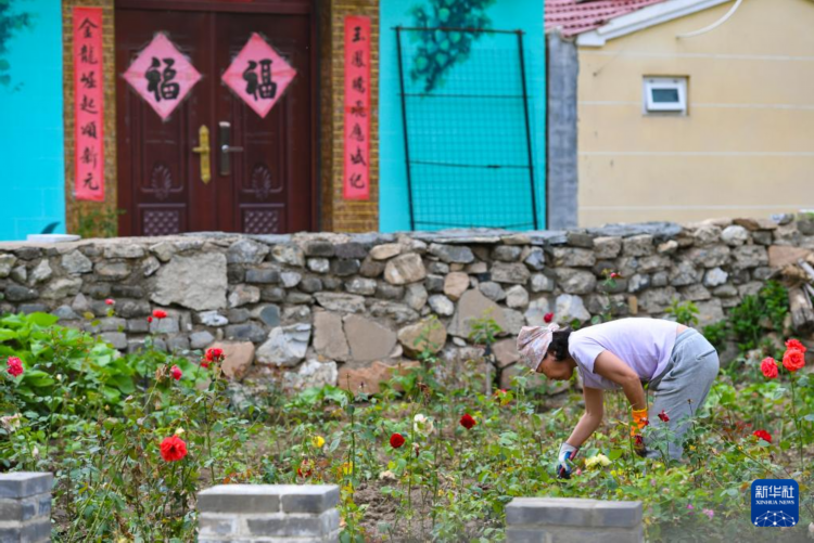 石峡村村民在打理一处村道旁的小花园(5月31日摄)。