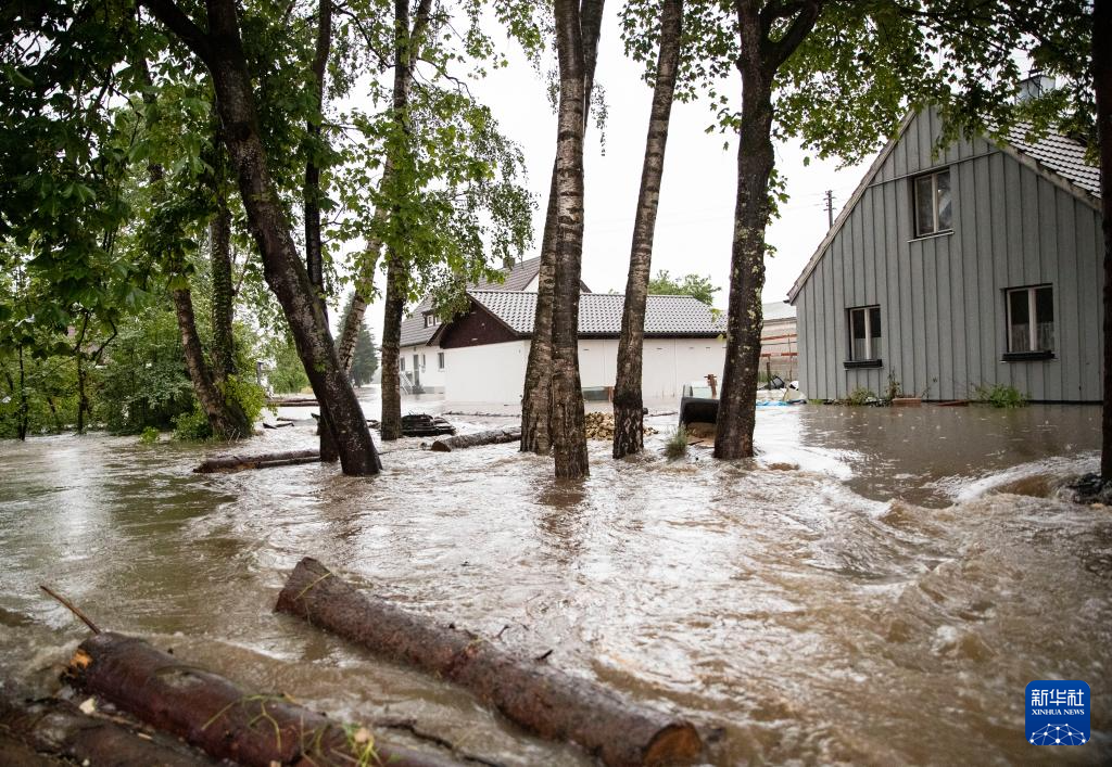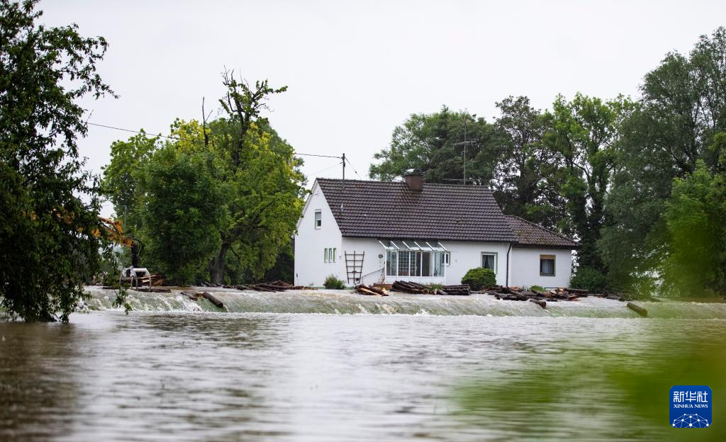 这是6月1日在德国巴伐利亚州戴森豪森拍摄的被洪水侵袭的房屋。 近日,德国南部巴伐利亚州、巴登-符腾堡州部分地区遭遇强降雨。多瑙河、内卡河、金茨河等多条河流水位上涨,多处决堤,沿岸大量城市和村镇遭遇洪水侵袭。 新华社记者 张帆 摄