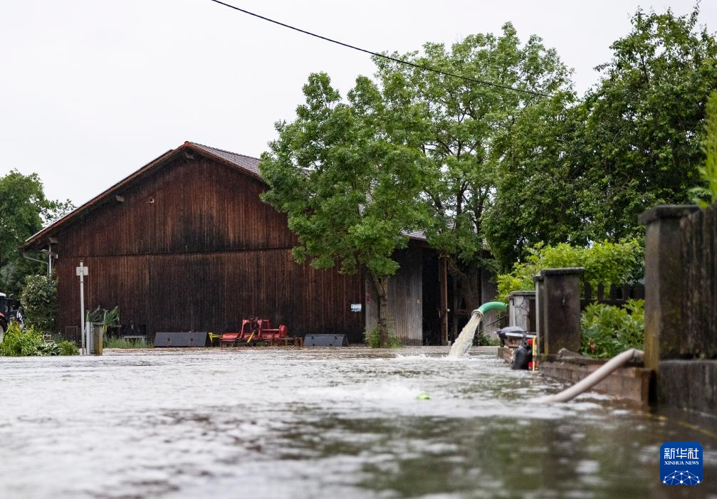 6月1日,在德国巴伐利亚州一处村镇,人们使用抽水机将自家院子里的积水排出。 近日,德国南部巴伐利亚州、巴登-符腾堡州部分地区遭遇强降雨。多瑙河、内卡河、金茨河等多条河流水位上涨,多处决堤,沿岸大量城市和村镇遭遇洪水侵袭。 新华社记者 张帆 摄