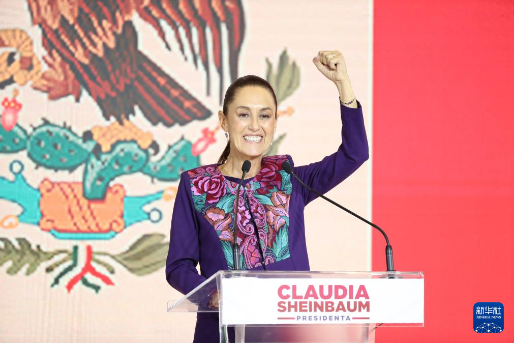 新华社墨西哥城6月3日电(记者席玥 吴昊)墨西哥执政党国家复兴运动党所在竞选联盟总统候选人克劳迪娅·辛鲍姆3日凌晨在首都墨西哥城宣布赢得总统选举胜利,将成为墨西哥史上首位女总统。