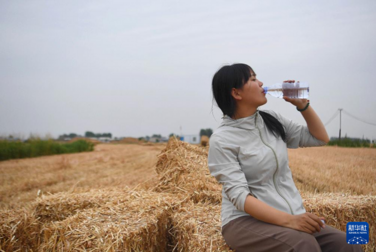 5月29日,在河南省平顶山市鲁山县马楼乡关庙杜村,杜梦园在忙碌间隙休息喝水。
