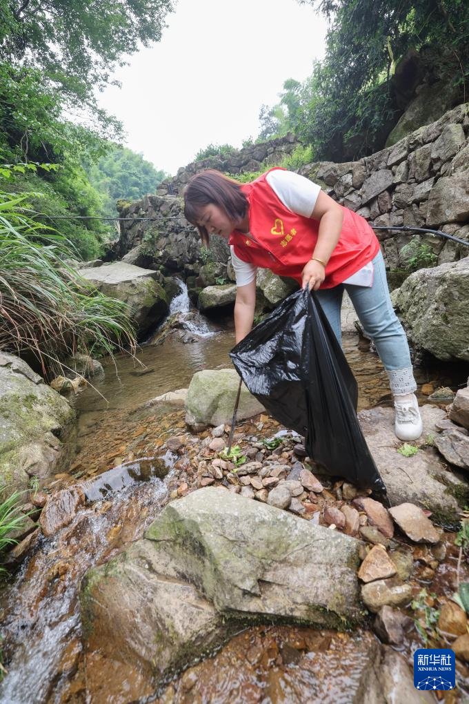 6月4日,在赵家镇走马岗古道,志愿者在清理沿途垃圾。