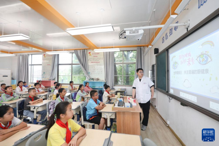 当日,浙江省湖州市吴兴区东林镇卫生院联合东林二小开展“关注普遍的眼健康”校园爱眼日主题活动。东林镇卫生院医生现场通过课件、眼球模型讲解、视力测试等方式让孩子们意识到近视的危害以及保护视力的重要性,倡导养成爱眼、护眼的良好习惯。