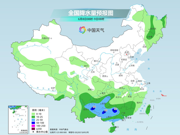 中央气象台预计,今天,内蒙古东北部、黑龙江北部、辽宁西部、华北中北部、青海东部、川西高原北部、西南地区东南部、华南南部等地部分地区有中到大雨,其中,贵州中部、广东西南部等地部分地区有暴雨或大暴雨。