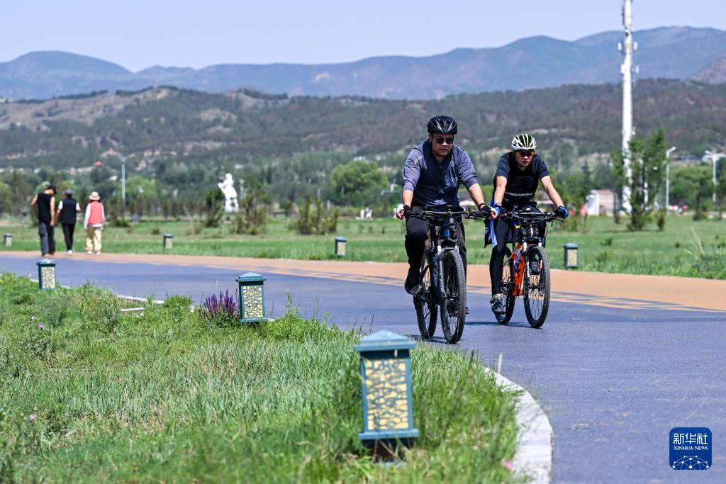 6月9日,游客在呼和浩特市敕勒川草原骑行。