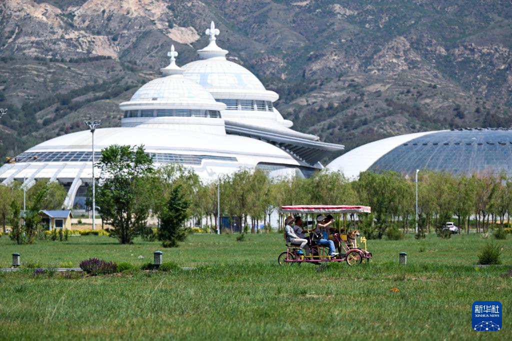 当日是端午节假期第二天,许多游客来到内蒙古自治区呼和浩特市敕勒川草原休闲游玩,欢度假期。