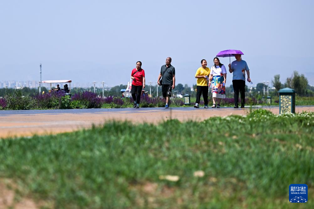 6月9日,游客在呼和浩特市敕勒川草原游玩。