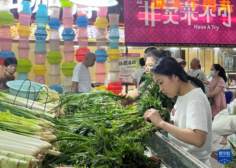6月10日,市民在海口市文华菜市场举办的菜市场非遗生活周活动上选购艾叶。